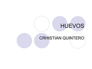 El documento proporciona información sobre los huevos. Describe que los huevos son un alimento nutritivo que contiene proteínas, grasas y vitaminas. Explica que un huevo está compuesto de cáscara, clara y yema y ofrece recomendaciones para su correcta conservación y cocción.