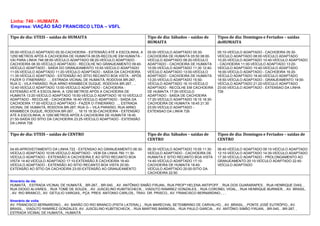 Este documento presenta los horarios de salida de los autobuses adaptados desde Humaitá y el Centro de la ciudad hacia diferentes destinos como Cachoeira, Sítio Recanto Boa Vista y Granjeamento en días laborables, sábados y domingos/feriados. También incluye los itinerarios de ida y vuelta entre estas localidades.