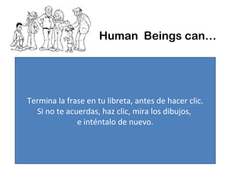 Humanos pueden pensar debido a su cerebro más desarrollado, comunicarse hablándose unos a otros y expresar sentimientos y emociones. También pueden enseñarle a otros lo que saben y aprender de otras personas.