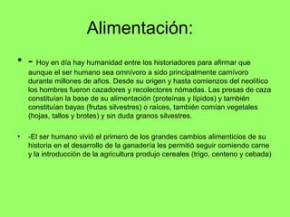 El documento describe las funciones vitales y no vitales del cuerpo humano. Las funciones vitales, necesarias para vivir, incluyen la nutrición, relación y reproducción. La nutrición se refiere a la respiración, alimentación, circulación de la sangre y excreción. La relación se refiere al control del cuerpo por el cerebro y sistema nervioso. La reproducción es necesaria para la conservación de la especie aunque no es vital para un individuo. Las funciones no vitales son importantes pero no causan la muerte si no se realizan