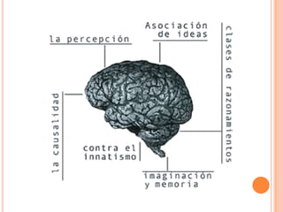 El documento presenta un resumen del contexto histórico y biográfico de David Hume, filósofo escocés del siglo XVIII. Brevemente describe su vida, obras principales como el Tratado de la naturaleza humana, Investigaciones sobre el entendimiento humano e Investigación sobre los principios de la moral. También resume su pensamiento filosófico, centrado en el empirismo, el escepticismo sobre conceptos como la causalidad y la inducción, su ética basada en los sentimientos y su visión del determinismo y el libre albedr