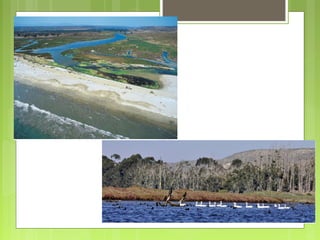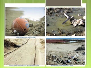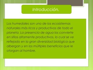 Este documento describe varios humedales importantes de la cuarta región de Chile, incluyendo la laguna Pachingo cerca de Tongoy, el humedal costero de Coquimbo, el humedal Huentelauquén en Canela y la desembocadura del río Limarí. Los humedales albergan una gran diversidad de flora y fauna nativas e incluyen especies en peligro de extinción.