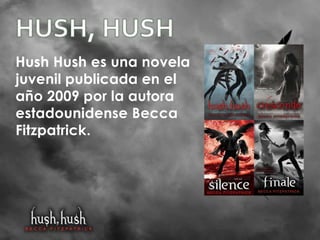 La novela Hush Hush de Becca Fitzpatrick sigue a Nora Grey, una estudiante que conoce a su nuevo compañero de biología Patch, quien resulta ser un ángel caído con una conexión oscura a Nora. La perspectiva de Nora revela los grandes misterios y peligros en los que se ve envuelta después de conocer a Patch.