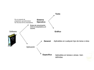 1) Sistemas operativos como MS-DOS y Windows que administran los recursos de la computadora y facilitan la interacción con el usuario.