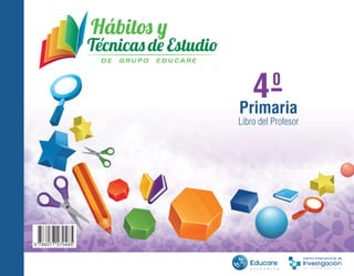 El documento presenta información sobre un libro de texto para el cuarto grado de primaria. Incluye una introducción sobre hábitos y técnicas de estudio, así como un índice de los temas que se abordarán en el primer bimestre, incluyendo "El valor del estudio" y "Si conozco mis talentos, puedo estudiar mejor". También presenta la estructura didáctica que seguirá el libro, así como guías y recursos de apoyo para maestros y padres de familia.
