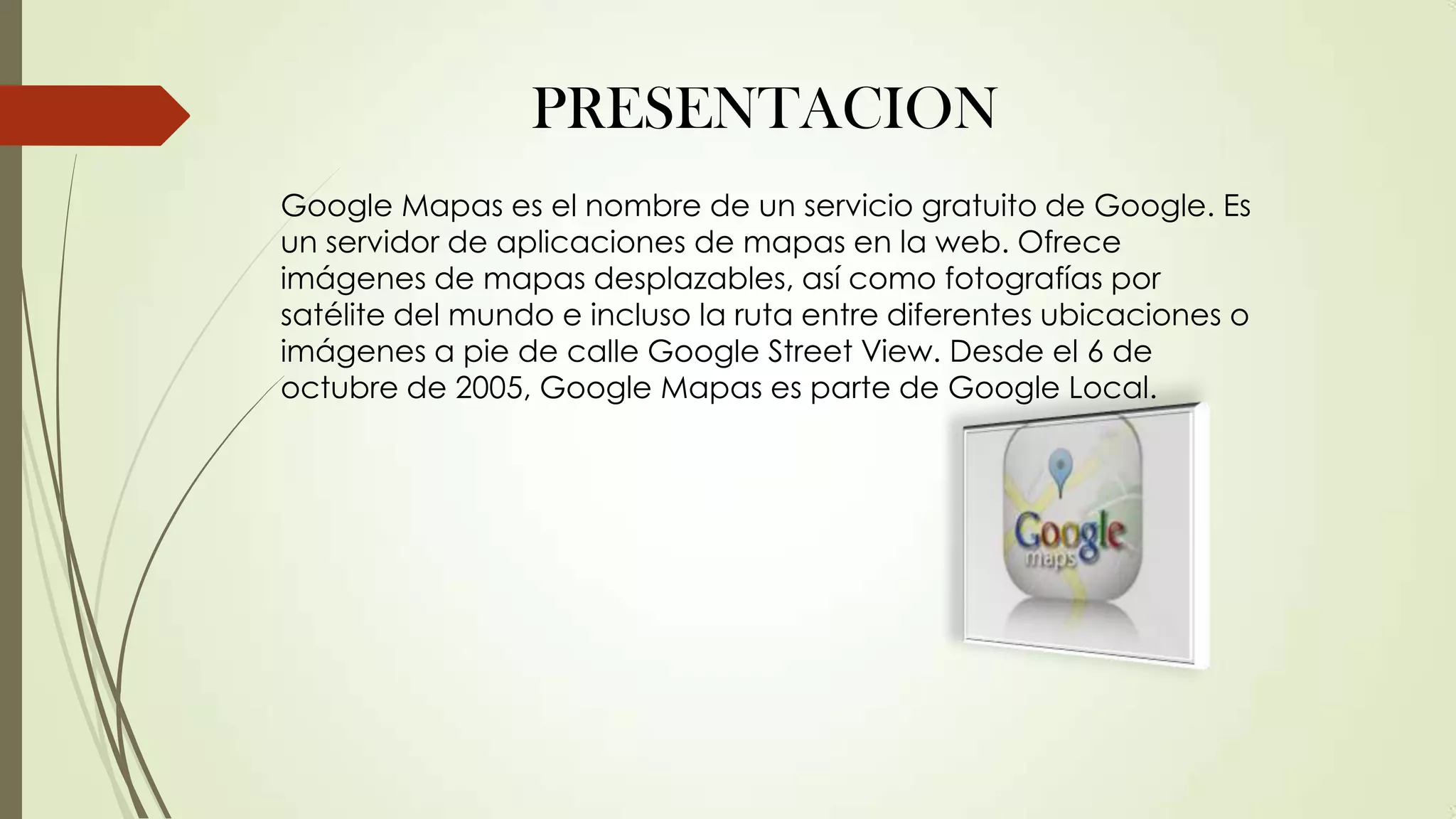 Google Maps es un servicio gratuito de Google que ofrece imágenes de mapas interactivos del mundo, fotografías aéreas y vistas de Street View. Los usuarios pueden buscar ubicaciones, obtener direcciones e indicaciones de rutas. Google Maps comenzó como un servicio beta en 2005 y ahora forma parte de Google Local.