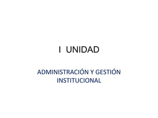 Este documento describe los conceptos clave de la administración y gestión institucional. Define términos como planificación, organización, integración, dirección y control. También explica los diferentes tipos de organización, liderazgo y sistemas de control. Por último, introduce la noción de gestión educativa y sus tres niveles: institucional, pedagógico y organizativo-administrativo.