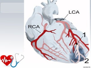 El infarto agudo de miocardio es una zona de necrosis en el miocardio causada por la pérdida de oxigenación debido a la oclusión de una arteria coronaria. Los principales factores de riesgo son la arteriosclerosis, el sedentarismo, el tabaquismo, la dislipidemia y la hipertensión arterial. El evento inicial suele ser un cambio en una placa de ateroma que puede llevar a hemorragia, erosión o ruptura, causando oclusión coronaria. Esto produce daño miocárdico que se manifiesta