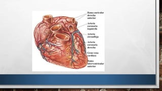 El infarto agudo al miocardio se define como la necrosis miocárdica aguda de origen isquémico, generalmente causada por la oclusión de una arteria coronaria. Sus tres síntomas principales son dolor torácico, disnea y diarrea. Existen tres arterias coronarias que irrigan el corazón. El electrocardiograma mide la actividad eléctrica del corazón y es útil para el diagnóstico. La principal causa es la formación de placa ateroesclerótica que puede romperse y ocasionar un trom