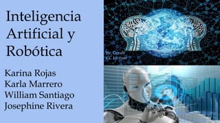 El documento aborda la inteligencia artificial y la robótica, destacando su simulación de procesos, aprendizaje y su aplicación en diferentes máquinas. Se mencionan asistentes como Siri, Google Assistant y Alexa, así como robots industriales de Hyundai y el sistema Da Vinci para cirugía. También incluye referencias a definiciones y clasificaciones de robótica.