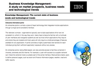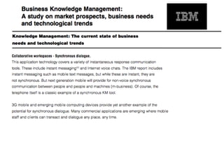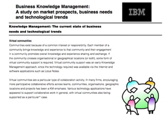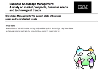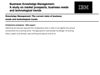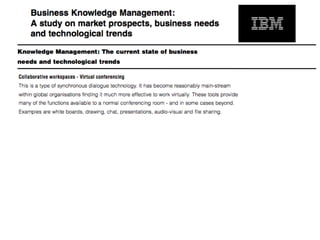 El documento aborda la falta de colaboración y acceso a la información en organizaciones debido a una cultura de no compartir y debilidades en la gestión del conocimiento. Se presentan diversos modelos de espacios de trabajo colaborativos, tanto sincrónicos como asincrónicos, que facilitan la comunicación y el intercambio de información entre diferentes entidades. También se discute la importancia de clasificar y visualizar documentos para mejorar el acceso a la información y fomentar un entorno colaborativo más efectivo.