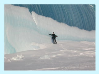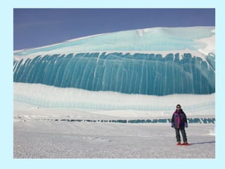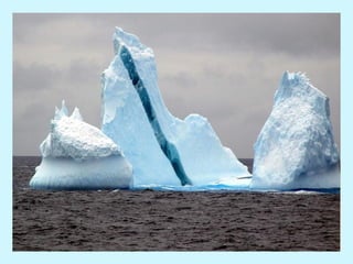Las rayas en los icebergs antárticos se forman por capas de nieve con diferentes condiciones, creando franjas azules, verdes, marrones, negras o amarillas. En la Antártida, el agua puede congelarse instantáneamente al entrar en contacto con el aire extremadamente frío.