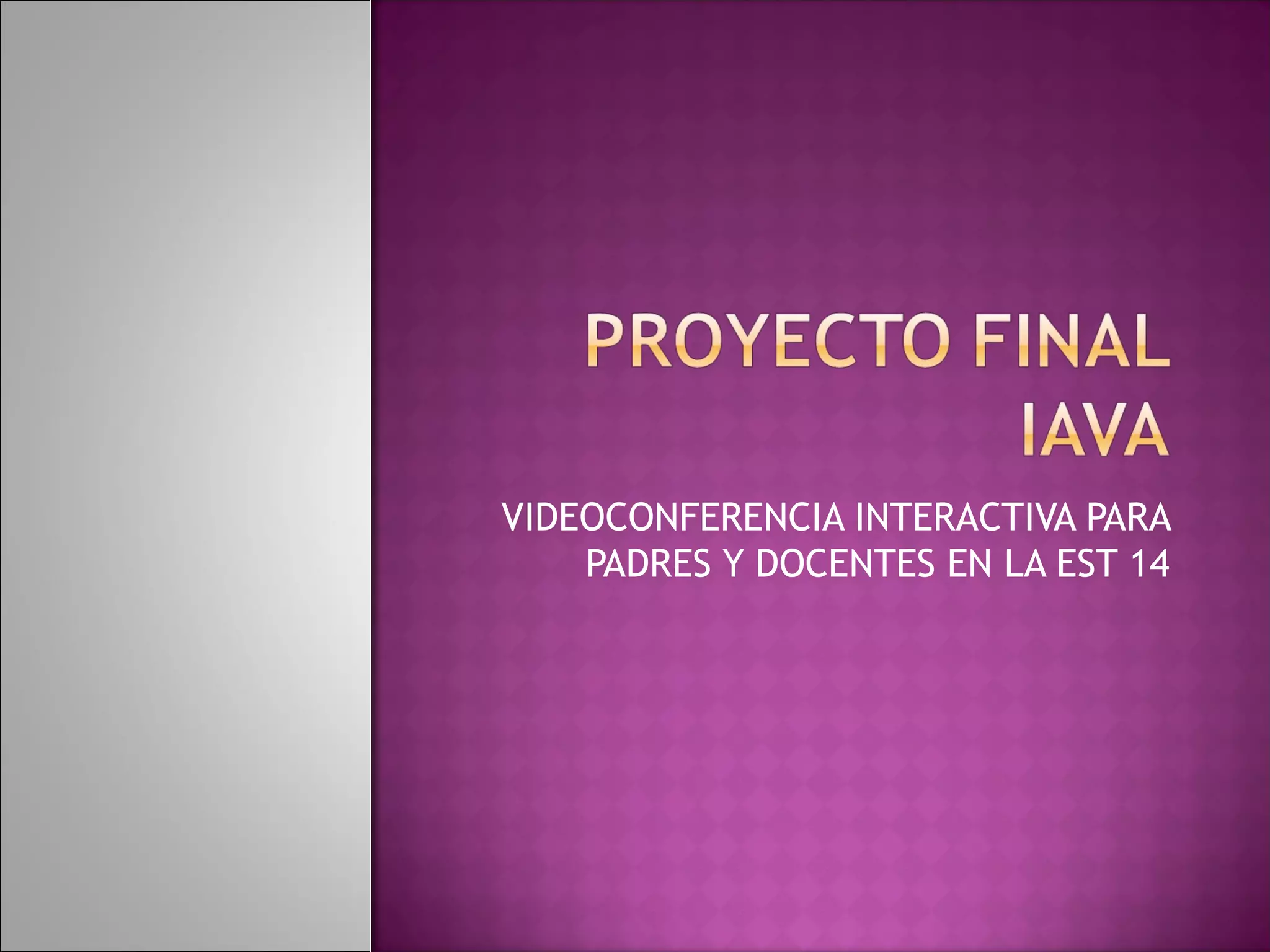 La docente Ivonne del Carmen Flores Ríos propone implementar videoconferencias interactivas con padres de familia de la Escuela Secundaria Técnica 14 para mejorar la comunicación, especialmente con los padres de alumnos con bajo rendimiento académico. El proyecto utilizaría cuentas de Gmail y Hangouts para facilitar las reuniones virtuales. Esto permitiría que más padres participen en las juntas de la escuela a pesar de sus horarios de trabajo. Se espera que esto mejore el apoyo de los padres y el