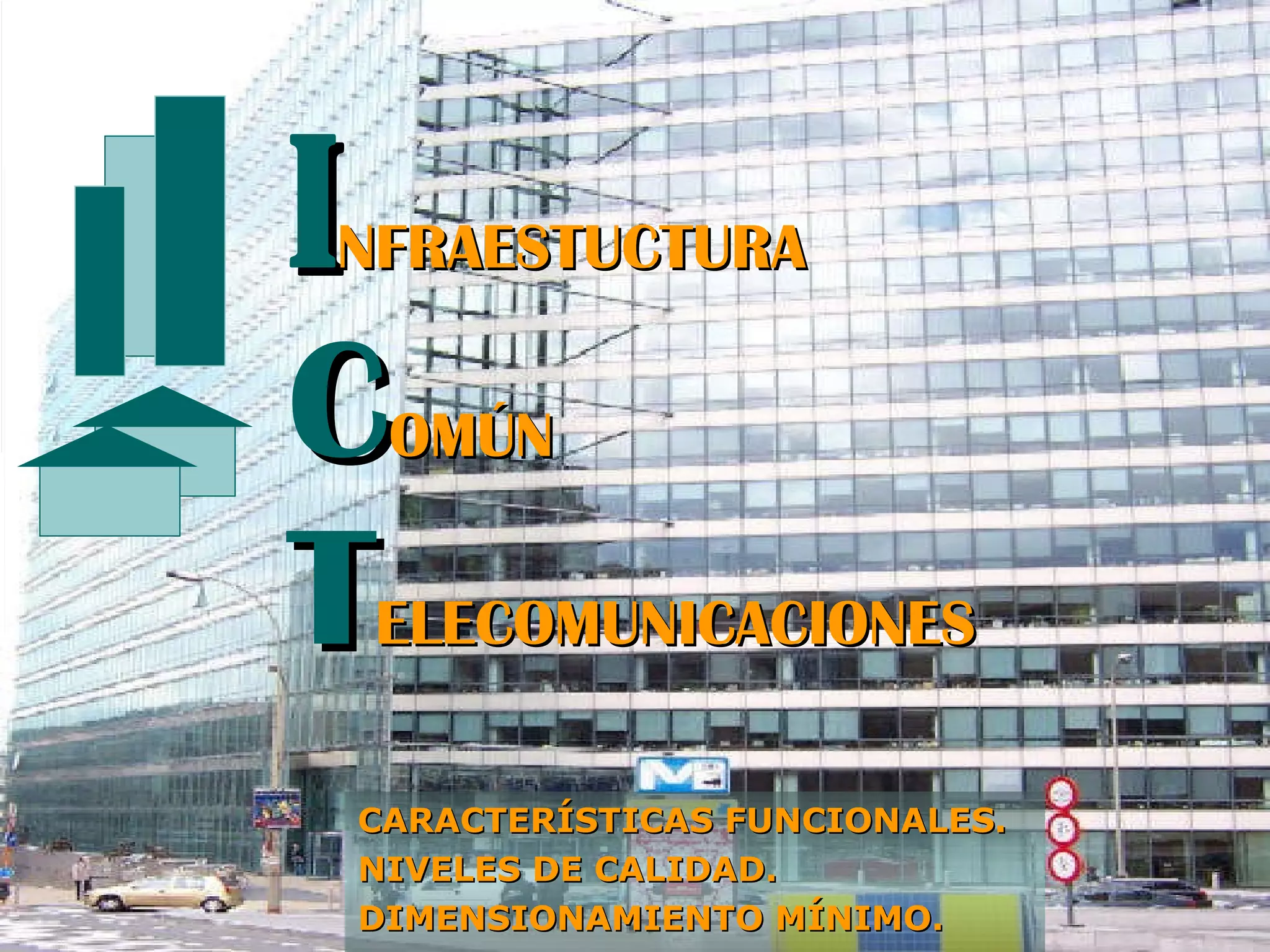 Este documento describe los requisitos técnicos mínimos para las infraestructuras de telecomunicaciones comunes en edificios. Establece los niveles de calidad y dimensionamiento requeridos para las redes de radio, televisión, telefonía, banda ancha y otros servicios de telecomunicación. Asimismo, especifica los materiales y características de las canalizaciones, registros y demás elementos de la instalación.