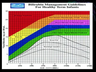 El documento trata sobre la ictericia en el recién nacido. La ictericia se caracteriza por altos niveles de bilirrubina en la sangre, lo que causa una coloración amarillenta en la piel y esclerótica del bebé. Las causas más comunes de ictericia neonatal incluyen aumento de producción de bilirrubina, disminución de la conjugación hepática y alteraciones en la excreción biliar. El documento describe en detalle estas causas y el enfoque para la evaluación y tratamiento de la ictericia neonatal.