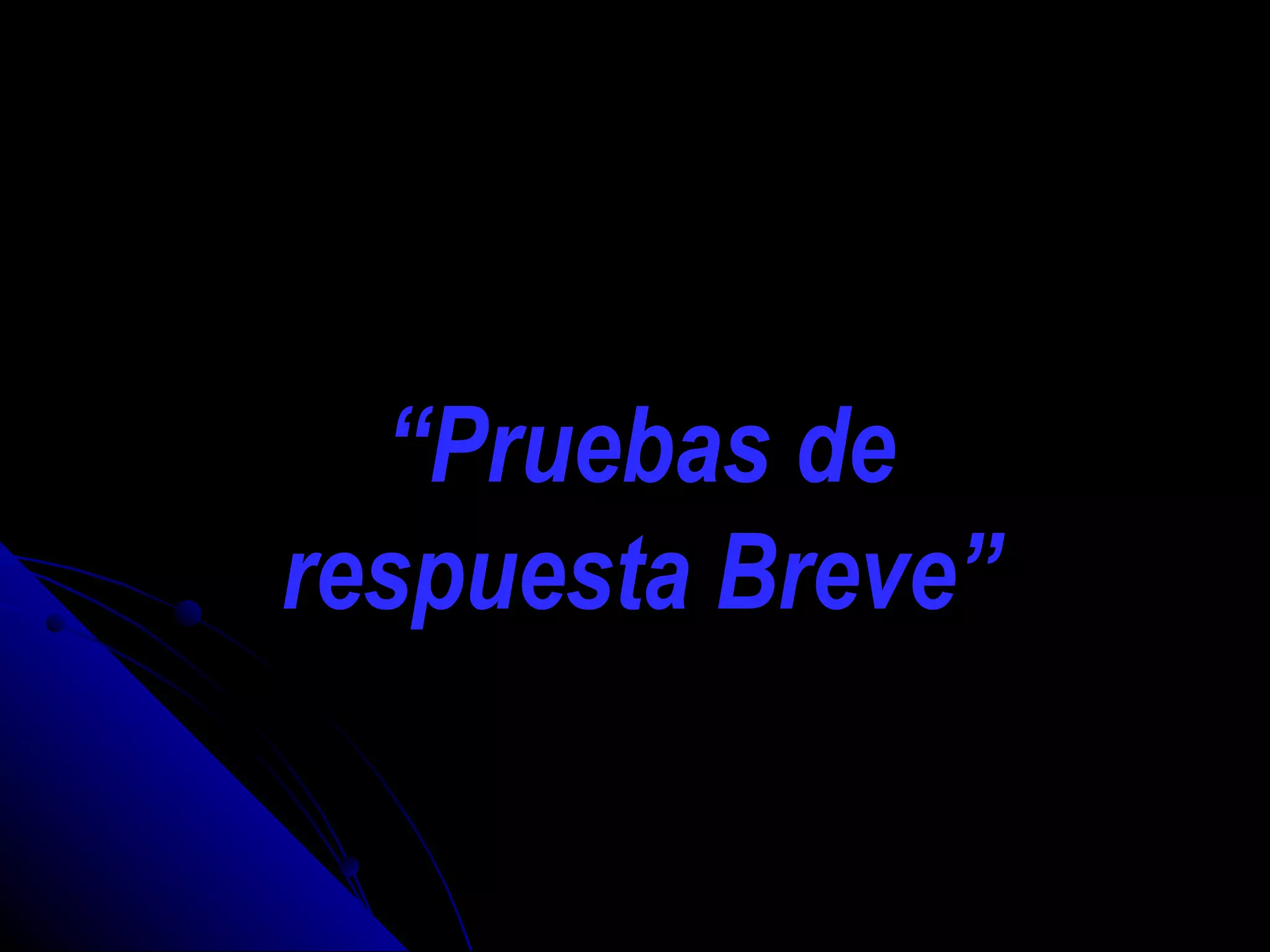 Este documento describe tres tipos de pruebas de respuesta breve: cuestionarios de respuesta breve, pruebas de canevá y pruebas de complementación. Estas pruebas miden la recuperación de información memorizada como conocimientos, hechos, principios e interpretación de datos a través de preguntas que requieren respuestas precisas de una palabra, frase o número.