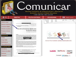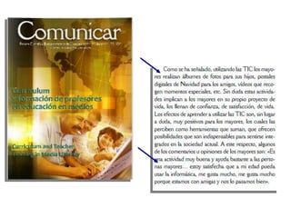 Este documento presenta varios enlaces a sitios web relacionados con temas como la conexión y desconexión en la era digital, el uso de teléfonos celulares y la nomofobia, las redes sociales y la construcción de identidad online. También incluye enlaces a recursos sobre envejecimiento activo y educación audiovisual.