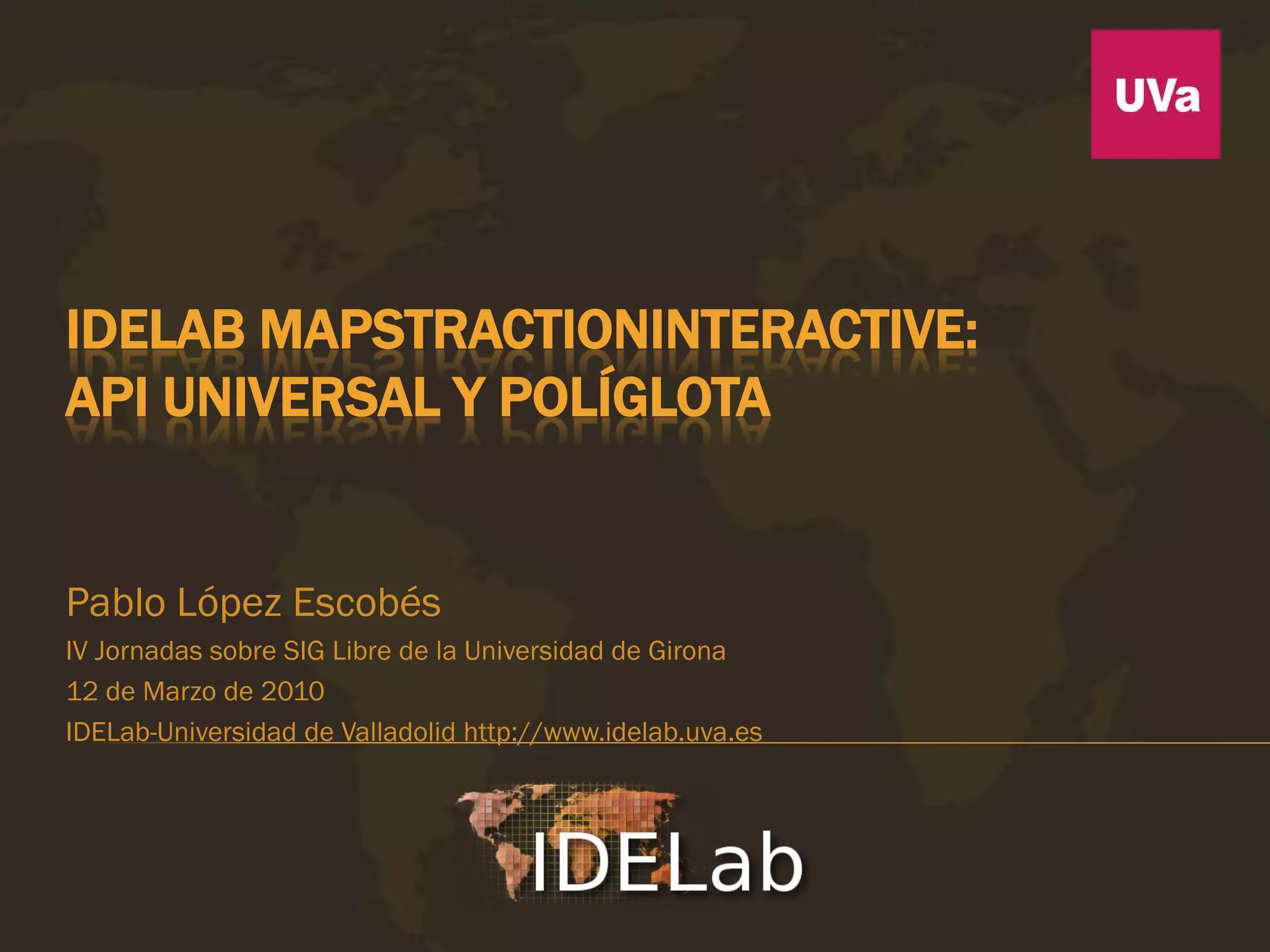 Este documento describe la creación de una extensión de Mapstraction llamada IDELab MapstractionInteractive que agrega funcionalidad interactiva. La extensión permite que los usuarios creen, modifiquen y eliminen geometrías directamente en el mapa y genera eventos para actualizar la página. También presenta una nueva arquitectura modular y una capa universal que implementa esta funcionalidad interactiva para todos los proveedores de mapas compatibles con Mapstraction.