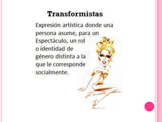 El documento describe la identidad de género en niños y algunos comportamientos que podrían ser signos de inconformidad con el género asignado al nacer. Explica que la identidad de género se desarrolla entre los 2 y 4 años y que durante este período es normal que los niños exploren diferentes roles de género. También señala que dejar que los niños se disfracen del género opuesto es aceptable. Finalmente, distingue entre orientación sexual, identidad de género y sexo biológico