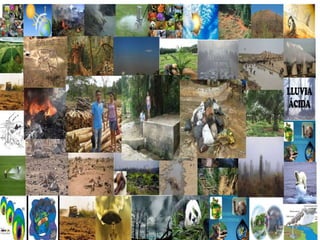 El documento aborda las problemáticas ambientales a nivel global, nacional y local, destacando la deforestación, la contaminación y la pérdida de biodiversidad como cuestiones críticas. Se menciona el impacto de la industria y los monocultivos en la degradación del medio ambiente, así como los efectos negativos del uso de plaguicidas y la urbanización en la calidad del aire. Además, enfatiza la importancia de la conservación de ecosistemas y la necesidad urgente de abordar estas problemáticas para proteger el planeta.