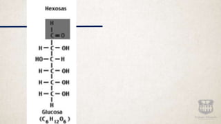 Este documento describe las características y funciones de las principales biomoléculas que componen los seres vivos: carbohidratos, lípidos, proteínas y ácidos nucleicos. Explica que los carbohidratos incluyen monosacáridos como la glucosa y fructosa, oligosacáridos como la sacarosa y polisacáridos como el almidón y glucógeno. Los lípidos se componen principalmente de glicerol y ácidos grasos. Las proteínas son polímeros de aminoácidos y cumplen