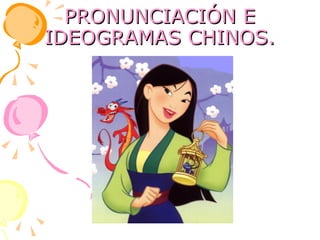 El documento describe brevemente el idioma chino mandarín y su sistema de escritura. Explica que el mandarín tiene un número limitado de sílabas y que el pinyin es el sistema de romanización más importante para escribir el chino. Además, detalla que los caracteres chinos son logogramas ideográficos que representan palabras o ideas y que la cultura china ha utilizado este sistema de escritura durante miles de años.