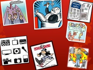 El documento discute la ideología marxista en la comunicación. Propone que los medios no deben ser privados y deben revelar la verdad e informar al público sin manipulación. Explica que la privatización limita el acceso a la información y permite que los dueños de medios y políticos controlen el contenido. El marxismo busca abolir estas limitaciones y desigualdades en pro de más libertad informativa.