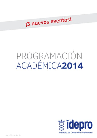 El documento presenta la programación académica de 2014 de una institución. Se anuncian nuevos eventos como programas gerenciales, un ciclo de conferencias para gerentes, y cursos personalizados para empresas. También continúan seminarios abiertos, certificaciones internacionales, y capacitación en áreas como finanzas, marketing y recursos humanos. La oferta busca brindar herramientas prácticas para la mejora empresarial.