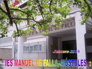 El documento describe un instituto en Móstoles con 40 profesores y personal dedicado a una educación pública integradora y de calidad, ofreciendo programas desde 1o a 4o de ESO y bachillerato. Se destaca su alta tasa de aprobados en pruebas y su enfoque en metodologías innovadoras y en el uso de nuevas tecnologías, como la sustitución de libros de texto por tablets. Además, el instituto ofrece actividades extracurriculares, como viajes, talleres de teatro y campeonatos escolares, fomentando el desarrollo integral de los alumnos.