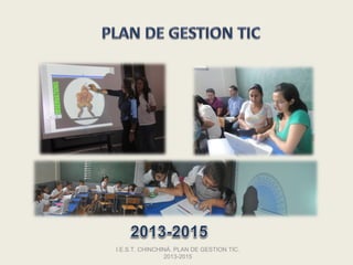 El documento presenta el Plan de Gestión TIC 2013-2015 del Instituto Educativo Santa Teresita de Chinchina. El plan busca incorporar las TIC de manera transversal en las diferentes áreas de gestión de la institución, como una estrategia para mejorar los ambientes de aprendizaje y ofrecer una educación de calidad. El plan establece objetivos y metas relacionadas con la incorporación de las TIC en los procesos directivos, académicos y de gestión administrativa y financiera para el periodo 2013-2015.