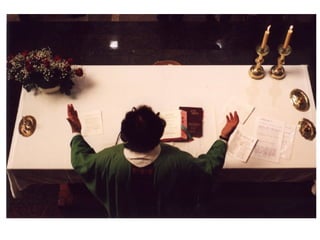 El documento lista varios elementos y objetos religiosos encontrados en iglesias como la Iglesia de la Magdalena y la Iglesia de Nuestra Señora del Rocío, incluyendo bancos, pilas de bautismo, retablos, altares, velas, flores, sagrarios, cálices, vinajeras, patenas, formas, copones, biblias y cruces.