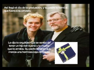 Un joven que quería un auto deportivo solo recibió una Biblia de regalo en su graduación y se enojó con su padre. Años después, cuando heredó la casa de su padre después de su muerte, encontró las llaves del auto escondidas en la Biblia, con una nota que decía que estaba completamente pagado. El joven se arrepintió de haber rechazado el regalo de su padre.