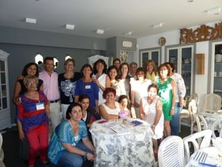 El documento resume una charla del Dr. Lucas Minig sobre ensayos clínicos que tuvo lugar en el Salón de té Margó en Madrid. Se agradece al Dr. Minig por su charla y apoyo, a Beatriz y su familia por ceder el espacio, a Alberto de "Somos pacientes" por el espacio virtual, a Roche por su iniciativa y a todos los asistentes.