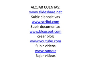 Este documento proporciona información sobre el III Congreso Internacional EDUTIC 2012 que se llevará a cabo del 10 al 12 de octubre en Lima, Perú. También recomienda algunas plataformas en línea como SlideShare, Scribd, Blogger y YouTube para alojar presentaciones, documentos, blogs y videos relacionados con el congreso.