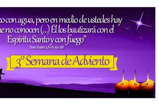 El documento describe el testimonio de Juan el Bautista sobre su identidad cuando fue interrogado por los sacerdotes y levitas judíos. Juan confesó que no era el Mesías, Elías ni el Profeta, sino "la voz que grita en el desierto" para preparar el camino para el Señor. Juan bautizaba con agua a la gente, pero dijo que había uno entre ellos a quien ellos no conocían, que era superior a él.