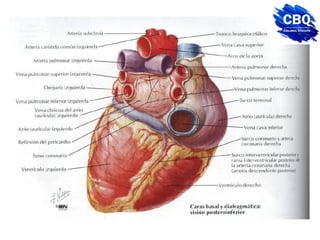 2) El corazón está rodeado por el pericardio y dividido en 4 cavidades. Está irrigado por la arteria pulmonar y las coronarias.
