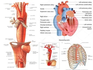 Este documento describe la anatomía de la tráquea, pleura, pulmones y corazón. Resume lo siguiente: