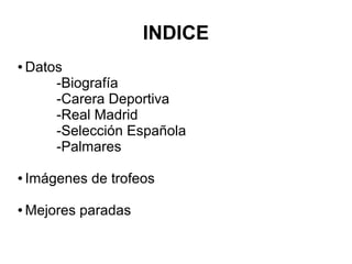 Iker Casillas es un futbolista español y capitán del Real Madrid y la selección española. Nació en 1981 en Madrid y se unió a las categorías inferiores del Real Madrid a los 9 años. Debutó con el primer equipo del Real Madrid a los 16 años y ha ganado múltiples títulos domésticos e internacionales con el club y la selección española, incluidas dos Eurocopas y la Copa Mundial de 2010.