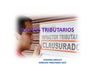 El documento describe diferentes tipos de ilícitos tributarios según la legislación venezolana. Incluye ilícitos formales por incumplir obligaciones como registrarse, emitir comprobantes o presentar declaraciones. También describe ilícitos materiales como retrasos en pagos o devoluciones indebidas. Finalmente, señala ilícitos penados con prisión como la defraudación tributaria.