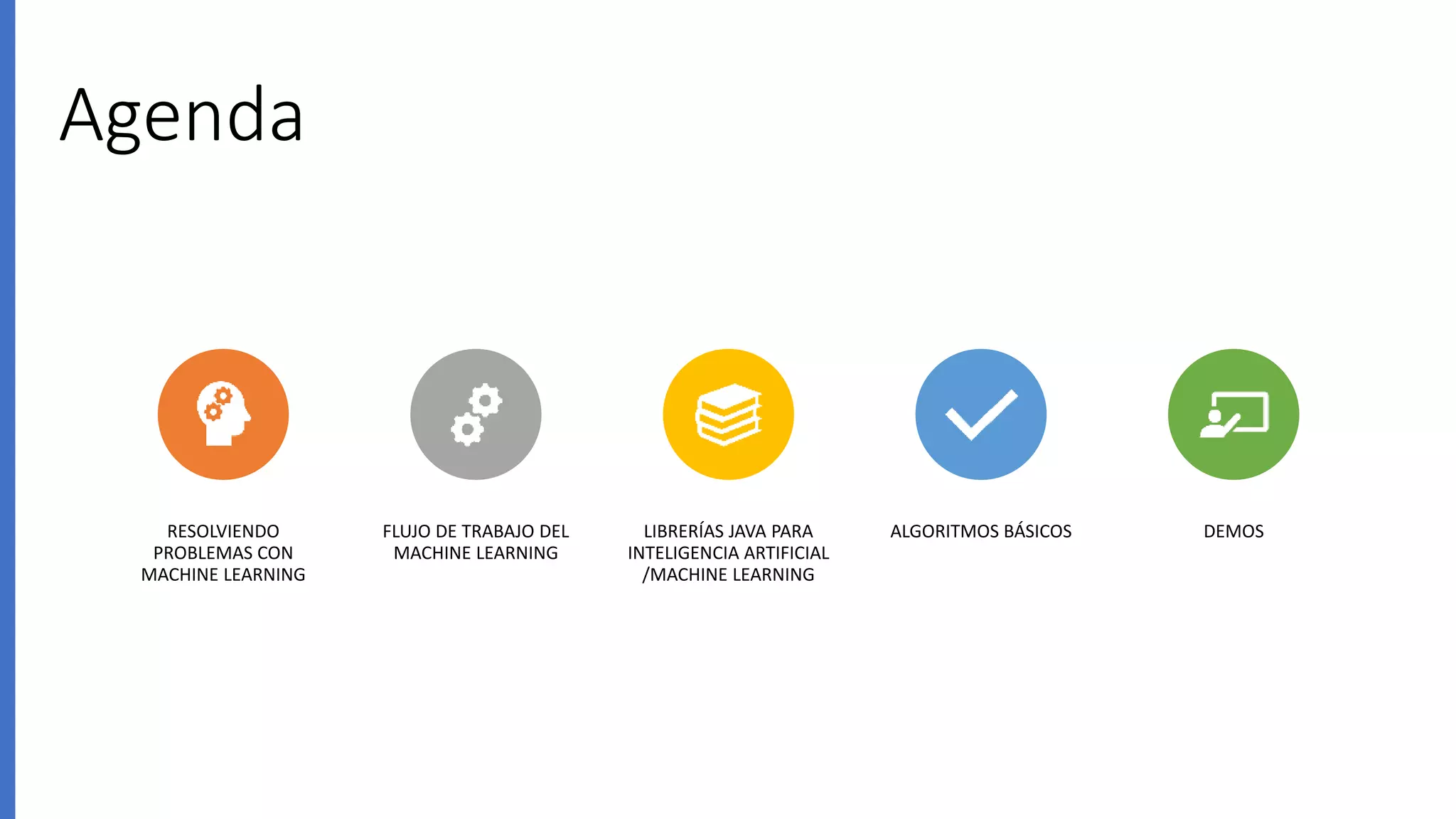 El documento presenta una introducción a la inteligencia artificial utilizando Java, enfocándose en la aplicación de machine learning para resolver problemas como la detección de fraude y sistemas de recomendación. Se mencionan flujos de trabajo, etapas en el proceso de machine learning y algoritmos específicos junto con librerías útiles para la implementación. Además, el autor, José Luis Bugarin, destaca la importancia de tener datos limpios y un sólido entendimiento de matemáticas y estadísticas para el desarrollo efectivo de soluciones en inteligencia artificial.
