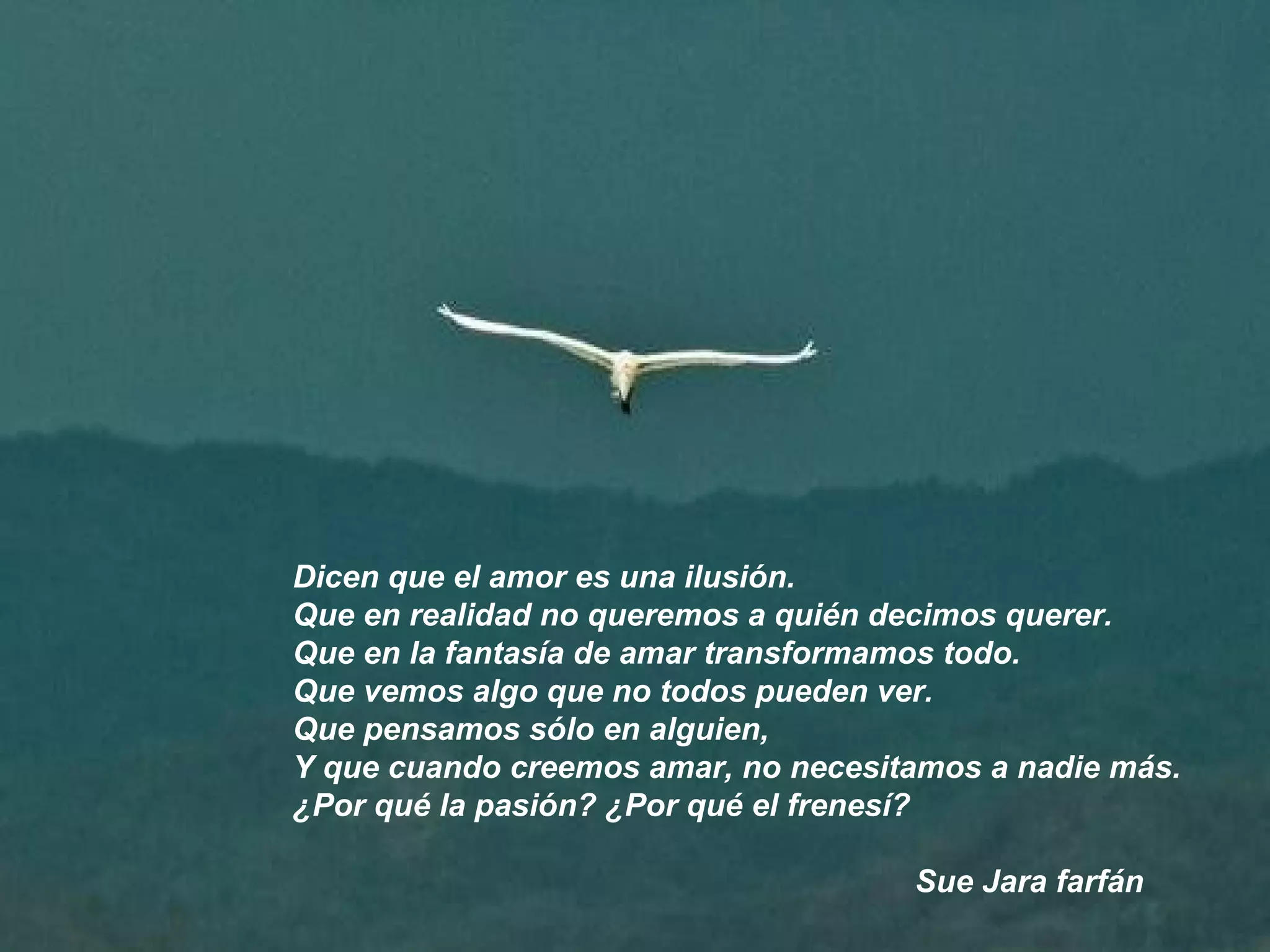 El poema cuestiona la naturaleza del amor, sugiriendo que en realidad es una ilusión en la que transformamos nuestra percepción para ver solo a la persona amada y creer que no necesitamos a nadie más, a pesar de que otros podrían no ver lo mismo. Se pregunta por qué sentimos la pasión y el frenesí del amor.