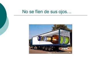 Este documento habla brevemente sobre las ilusiones ópticas y cómo nuestra mente a veces interpreta las cosas de manera diferente a la realidad. Menciona algunas ilusiones como puntos grises y sombras que desaparecen, y cómo parpadear puede afectar lo que vemos. Termina diciendo que aunque estas ilusiones sean imposibles en la realidad, nuestra mente es capaz de percibirlas.