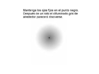Este documento presenta una serie de ilusiones ópticas en forma de imágenes y pequeños párrafos de texto que describen efectos visuales extraños producidos por las figuras. Se incluyen varios ejemplos de ilusiones como líneas que parecen curvarse pero que en realidad son rectas, círculos que parecen moverse aunque están quietos, y figuras que cambian de forma según la perspectiva del observador.