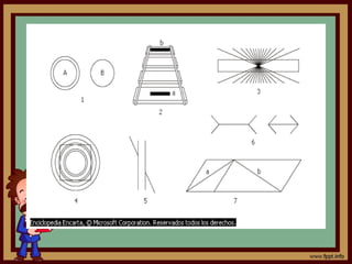 Este documento presenta diferentes ilusiones ópticas y efectos visuales que engañan a la vista. Explica que nuestros sentidos a veces nos engañan y nos muestran una realidad distinta de lo que realmente es. Luego muestra varias imágenes con ilusiones ópticas como líneas que parecen de diferente longitud pero son iguales, superficies planas que parecen curvas, y figuras ocultas que solo se ven desde ciertos ángulos. Finalmente, propone como tarea encontrar más ilusiones ópticas.