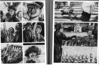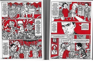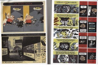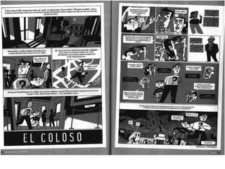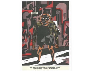 Este documento presenta breves biografías de varios artistas de cómics españoles, incluyendo sus estilos y técnicas artísticas. Destaca los trabajos de Santiago García, Javier Olivares, Antonio Altarriba, Keko, Max, Pablo Alaudell, Laura Pérez Vernetti, Fermín Solís, María Hesse y Ana Galván.