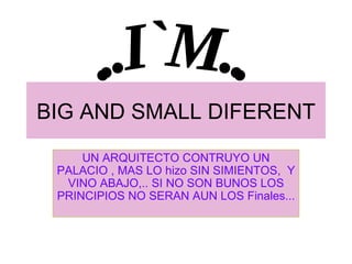 BIG AND SMALLDIFERENT UN ARQUITECTO CONTRUYO UN PALACIO , MAS LO hizo SIN SIMIENTOS, Y VINO ABAJO,.. SI NO SON BUNOS LOS PRINCIPIOS NO SERAN AUN LOS Finales... ...I`M...