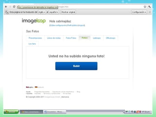 Imageloop es una herramienta web gratuita que permite a usuarios registrarse y crear presentaciones animadas utilizando sus propias fotos a través de plantillas, efectos y fondos. Una vez registrados, los usuarios pueden ver presentaciones de otros, agregar comentarios, y configurar la privacidad de sus propias presentaciones. Además de crear presentaciones para sitios web y redes sociales, Imageloop permite crear presentaciones de diapositivas para teléfonos móviles compatibles.