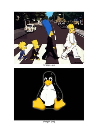 El documento compara los formatos de imagen GIF, BMP, JPG y PNG. GIF es común en páginas web y conserva la información sin pérdida durante la compresión. BMP es un formato estándar de Windows que almacena imágenes independientes del dispositivo. JPG es bueno para fotografías y puede mostrar más de 16 millones de colores. PNG conserva las ventajas de GIF pero agrega más funciones como transparencia y escalas de grises.