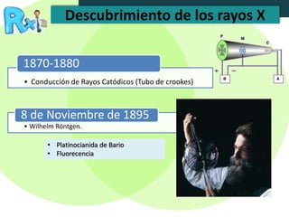 El documento detalla la historia y propiedades de los rayos X, así como sus aplicaciones en el diagnóstico médico y los efectos biológicos de la radiación ionizante. Se discuten diferentes técnicas de imagenología, como radiografía, tomografía y fluoroscopia, junto con sus métodos de procesamiento y comparación entre radiografía analógica y digital. Además, aborda la exposición a radiación y sus posibles efectos adversos en la salud, enfatizando la importancia de la protección radiológica.