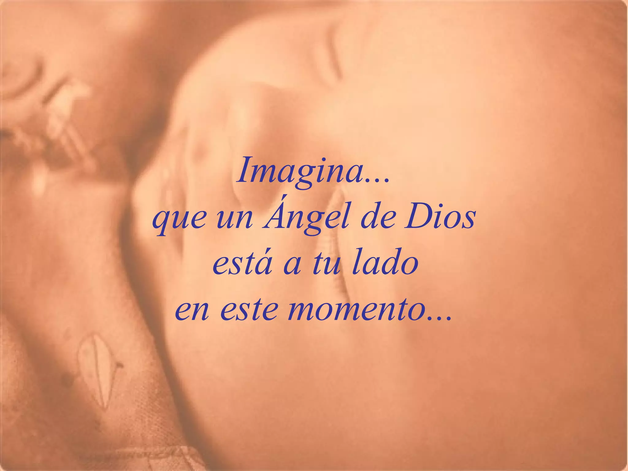 El documento describe una experiencia imaginativa en la que una persona se conecta con un ángel de Dios, entregando sus problemas y angustias en un acto de fe. Se invita a visualizar momentos de felicidad y agradecimiento, cultivando una perspectiva positiva sobre el futuro. Al finalizar, se sugiere compartir el mensaje de gratitud con otros para extender la bendición divina.